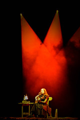 Bajo una luz naranja intensa y envolvente, en la Salle Wilfrid-Pelletier, Natalia Lafourcade apareció con elegancia y misterio. Vestida completamente de negro, acompañada solo de una guitarra, una lámpara tenue y su esencia, creó una atmósfera poética e íntima, muy estilo café concert.